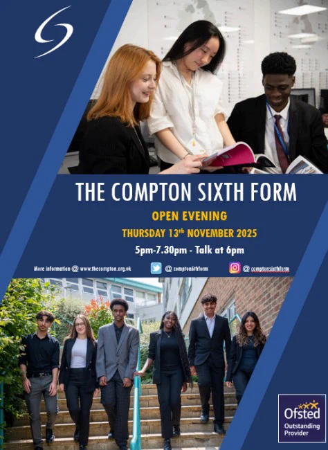 We're looking forward to welcoming Sixth Form students this evening to @thecompton Sixth Form Open Evening!The Compton School (@thecompton)Join us TONIGHT at The Compton Sixth Form Open Evening from 5pm-7:30pm. Discover opportunities, meet inspiring students, and explore your future. #ComptonSixthForm #OpenEvening— https://x.com/thecompton/status/1988924864514711787